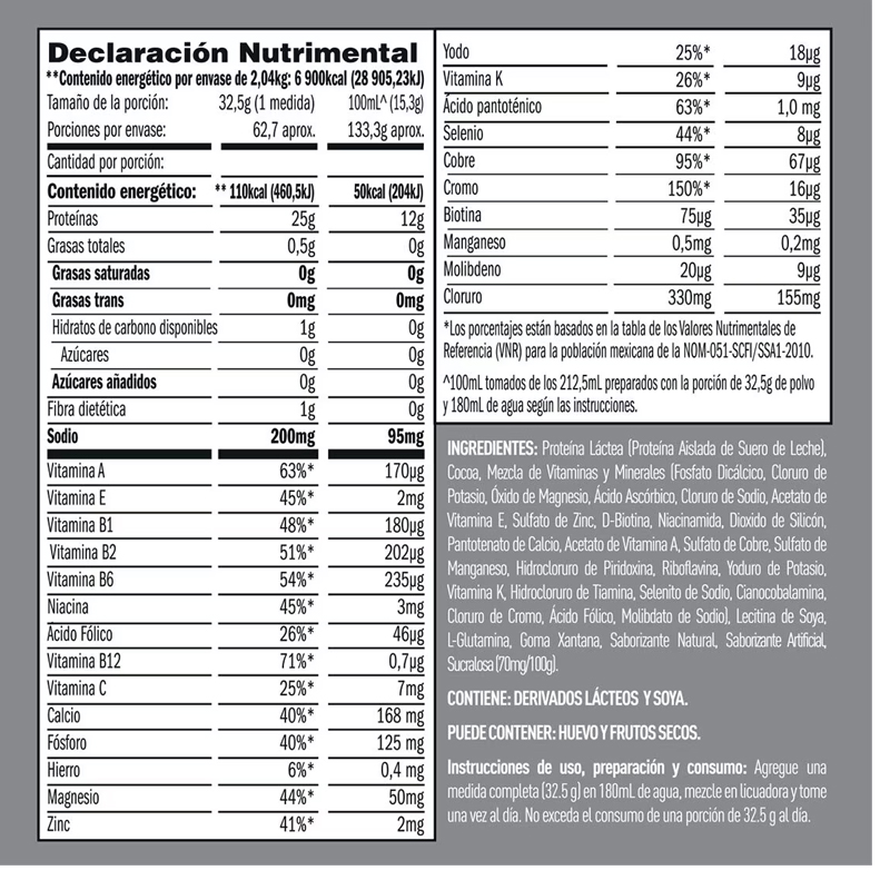 25 g de proteína aislada por porción