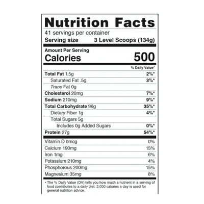 - Se mezcla con agua o leche y se consume como batido energético, especialmente después del entrenamiento o entre comidas para completar calorías y ayudar al crecimiento muscular en fases de volumen.